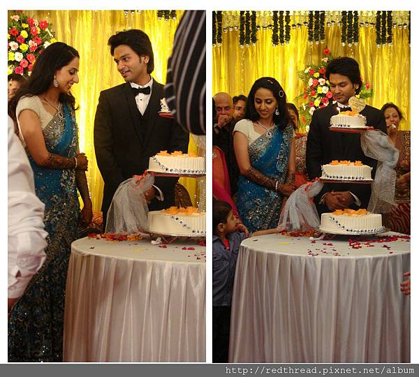 新人互餵蛋糕,結婚蛋糕 是在這一天就先端出來了